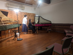 <ピッチの違うチェンバロで演奏し、香取先生のアドバイスをもらっています>
