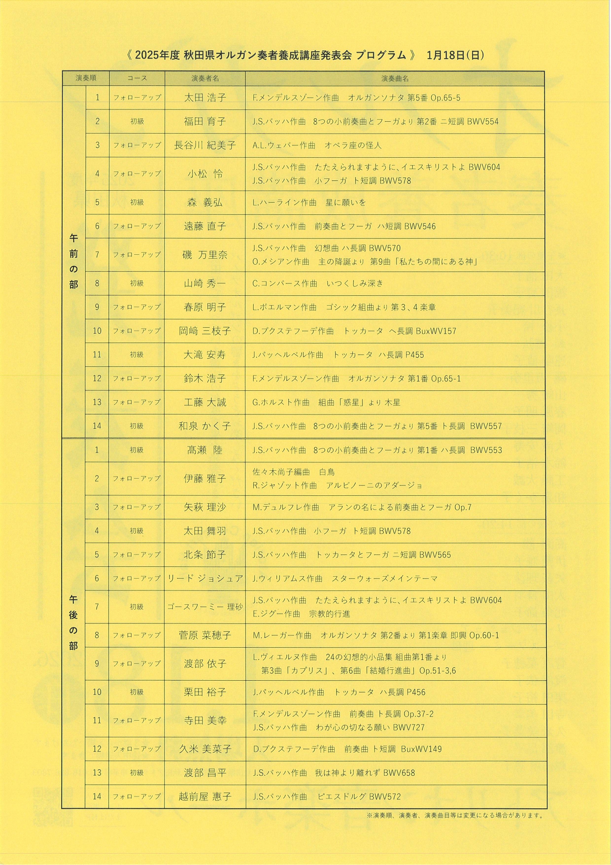 秋田県主催で継続されているオルガン奏者養成講座、今年も発表会の季節となりました。当会の会員もたくさん演奏されるので、入場無料のこの機会にぜひ足を運んでみてはいかがでしょうか。詳細はチラシの通りです。会員の皆さんには1月発行のかわら版にチラシを同封いたしますのでお楽しみに(事務局)