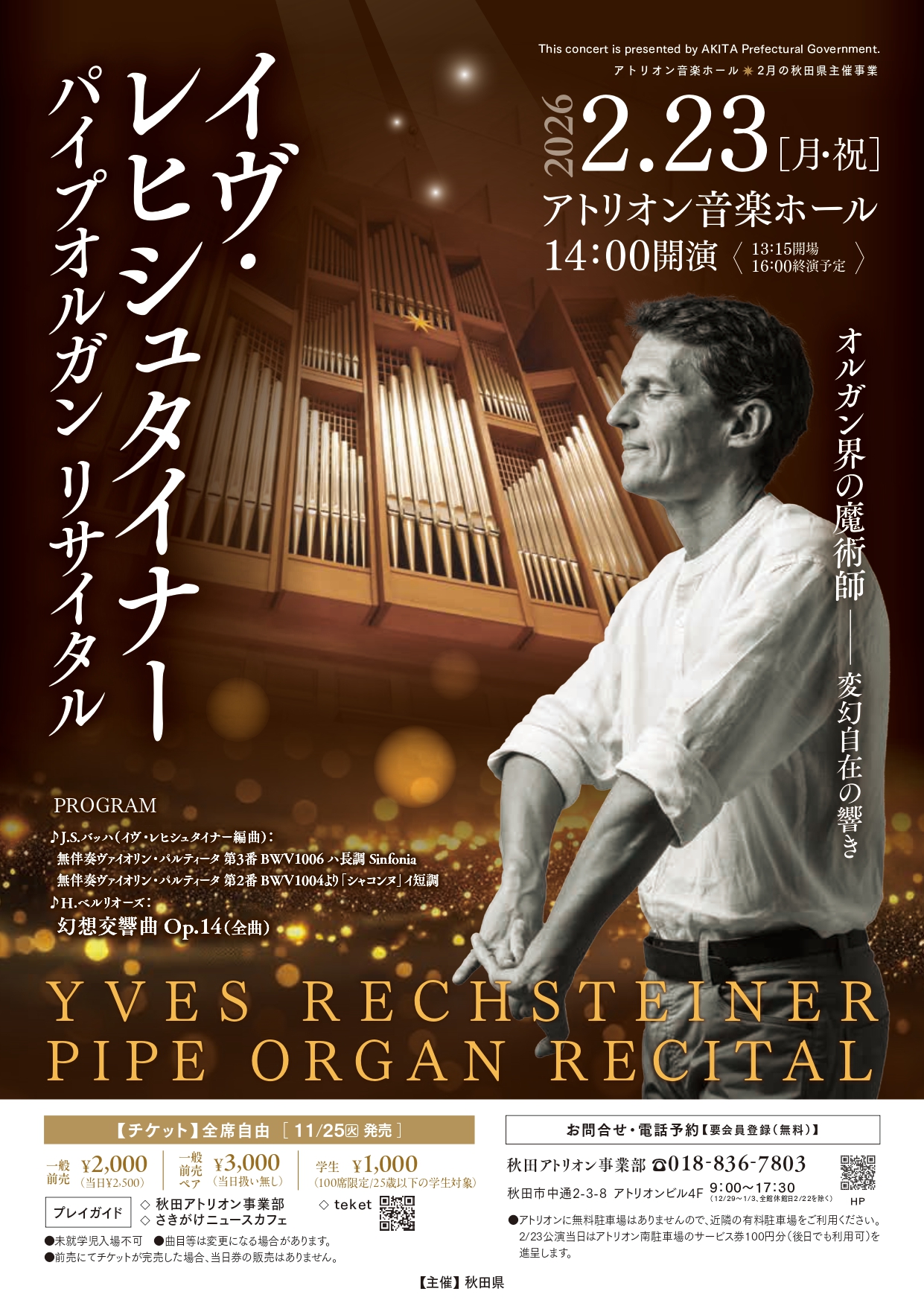 2月23日にアトリオンへオルガン界の魔術師と呼ばれるイヴ・レ火シュタイナーさんがやってきます。チケットはすでに発売されておりますので、この機会にぜひ聞いてみませんか。詳細はチラシの通りです。私も買いにいかなくちゃ!(事務局)